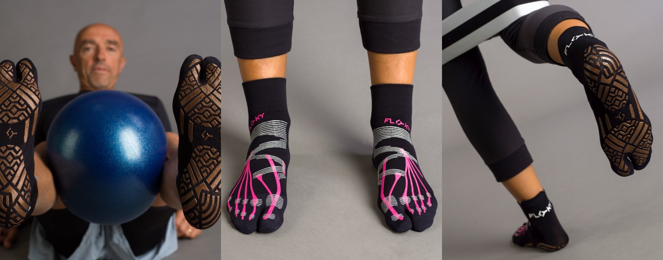 Die FLOKY SOCKS Kinetica besitzen einen separierten großen Zeh, sodass alle Arten von Bewegungen, Fußstellungen und Trainingsformen aktiv unterstützt werden.